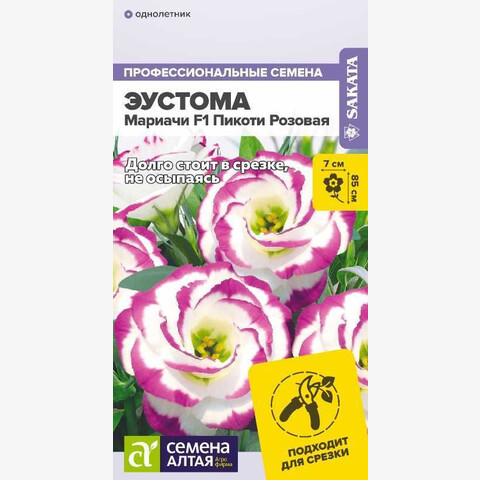 Срезочный сорт, долго стоит в вазе, не осыпаясь, отлично смотрится в букетах и на клумбах. Цветки махровые, белой окраски с контрастными розовыми краями лепестков, в фазе полуроспуска напоминают бутоны роз. При достаточном количестве света и минерального питания можно выращивать в комнатных условиях. Высота растения: 75-85 см Диаметр цветка: 5-7 см Условия выращивания, место посадки: хорошо освещенные места без попадания прямых солнечных лучей Требования к грунту: питательный легкий грунт, от слабокислого до нейтрального Способы выращивания: рассадный Время посева на рассаду: ноябрь-январь Способ посева: семена высевают на уплотненное ложе замоченных торфяных таблеток или увлажненного грунта, не заделывая. Драже увлажняют из опрыскивателя. Емкость накрывают прозрачной крышкой или пленкой до появления первых всходов, периодически проветривают. Обеспечивают досветку посевов не менее 12-16 часов в сутки и температуру 22-25°С Время до появления всходов: 7-14 дней Перевалка: производится в стадии 2-4 настоящих листьев в рассадные емкости диаметром около 9 см Время высадки в открытый грунт: май-июнь, не менее 10-14 недель от посева Посадочное расстояние: 15-25 см Период цветения: июнь-август, с 14-18 недели от полных всходов, январь-август при выращивании в качестве комнатного растения Уход: досветка растений 12-16 часов в сутки, рекомендуется провести прищипывание для стимуляции ветвления на 8-10 неделе, первую подкормку проводят в фазе 2-4 настоящих листьев комплексным минеральным удобрением, далее – 1 раз в 2 недели. В начале бутонизации из подкормок убирают азот. Внимание! Семена дражированные, оболочку не разрушать, она растворяется при поливе!