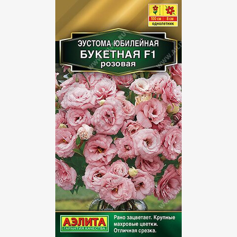 Раннецветущая гибридная серия крупноцветковой эустомы. Одна из лучших по своим генетическим свойствам. Изящные крепкие кустики достигают высоты 90-100 см. Отлично ветвятся, одновременно образуя целое море пышных цветков ? 7-8 см. Махровая эустома – это, пожалуй, самое модное растение для букета и цветочного оформления, особенно в свадебном дизайне. В срезке нежные лепестки надолго сохраняют свежесть и опрятный вид. Гибрид можно выращивать в домашних условиях с обязательным досвечиванием. Для пышного и длительного цветения рекомендуются подкормки раз в 10 дней.