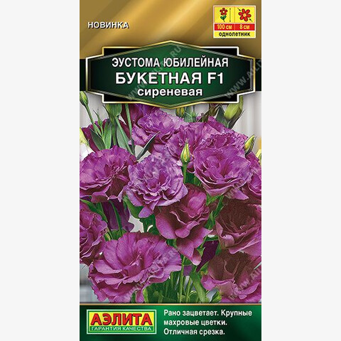 Раннецветущая гибридная серия крупноцветковой эустомы. Одна из лучших по своим генетическим свойствам. Изящные крепкие кустики достигают высоты 90-100 см. Отлично ветвятся, одновременно образуя целое море пышных цветков ? 7-8 см. Махровая эустома – то, пожалуй, самое модное растение для букета и цветочного оформления, особенно в свадебном дизайне. В срезке нежные лепестки надолго сохраняют свежесть и опрятный вид. Гибрид можно выращивать в домашних условиях с обязательным досвечиванием. Для пышного и длительного цветения рекомендуются подкормки раз в 10 дней.
