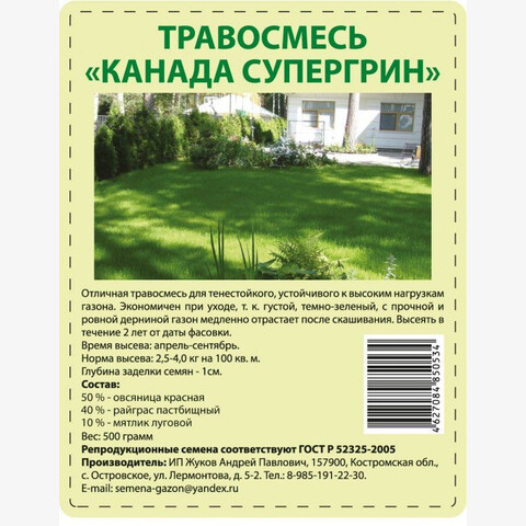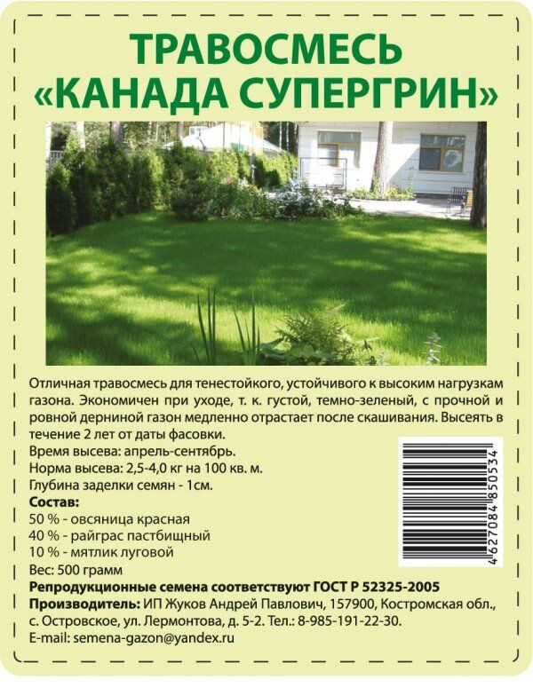 • Состав: овсяница красная 50 % райграс пастбищный 40 % мятлик луговой 10 %