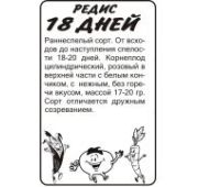 Среднеранний, новый, урожайный, крупноплодный сорт, созданный на основе местного сибирского селекционного материала. Корне плодыокругло-плоские, розово-красной о краски, кончики белые, средней массой 20-25 г. Поверхность ровная, блестящая, мякоть белая, плотная. Вкусовые качества корне плодов хорошие, оцениваются в 4-4,3 балла. Сорт практически не склонен к стрелкованию. Урожайность в Новосибирской области составила 72ц с 1га. Сорт ценится за высокую урожайность, хорошие вкусовые качества корнеплодов и минимальную склонность к стрелкованию. Для ускорения процесса всхожести семян, оздоровления растений, улучшения завязываемости плодов рекомендуется пользоваться специально разработанными стимуляторами роста и развития растений.