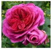 Закрытые бутоны окрашены в приятный розово-лавандовый окрас. Лепестки раскрывшихся роз имеют фиолетовый цвет с розовым отливом. Основная окраска роз – фиолетовая и сиреневая. Насыщенность цвета яркая. Двухцветные цветки формой напоминают чашу, а бутоны округлые. Размеры средние. Диаметр – 6-7 сантиметров. В густомахровых цветках собрано по 50-60 лепестков. Бутоны собраны в крупные соцветия группами по 10-15 штук на каждом стебле. Вокруг растений витает сладкий, но слабый аромат.