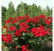 Французский цветок – это мощное и энергичное растение с прямостоячими побегами, вытягивающимися в высоту до 100-120 см. Если куст не укорачивать, то он вырастет еще выше – до 150 см. Характеризуется куст умеренной раскидистостью ветвей, на которых можно заметить немногочисленные острые колючки, хорошей облиственностью изумрудными матовыми листочками с зазубренными краями, а также развитым корневищем стержневого типа. Куст аккуратный, немного пышный, достигающий объема 70-80 см. Во время вегетации на сильных стеблях формируются бутоны, собранные в малоцветковые соцветия-грозди по 3-5 единиц.